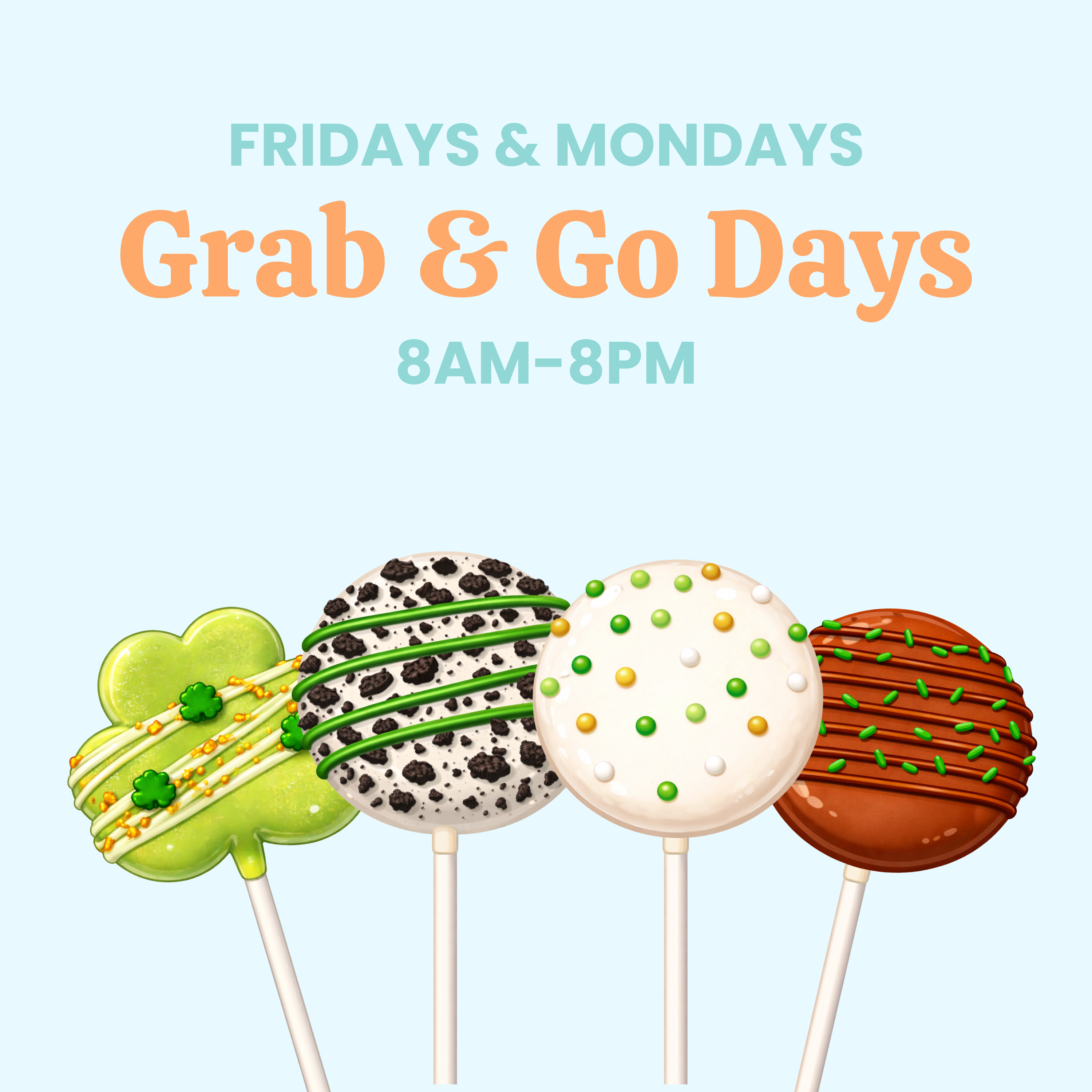 Fresh, rotating cake pop flavors available for grab & go—no preorder needed! $3 each or 4 for $10.